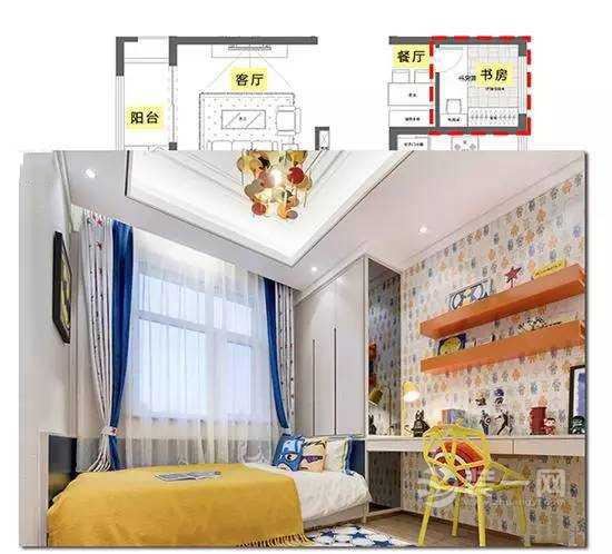 3、餐厅和生活阳台的空间很大,造成空间的严重浪费。设计师建议将生活阳台利用起来,然后缩小餐厅空间,做一个书房。榻榻米功能比较强大,我们最后将书房做成榻榻米式的,这样既可以做书房,还可以做客房。