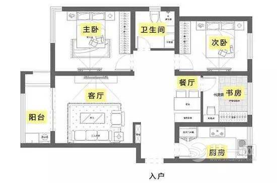 2、避免入户门对卫生间门的尴尬,将入户门和卫生间门的位置错开;